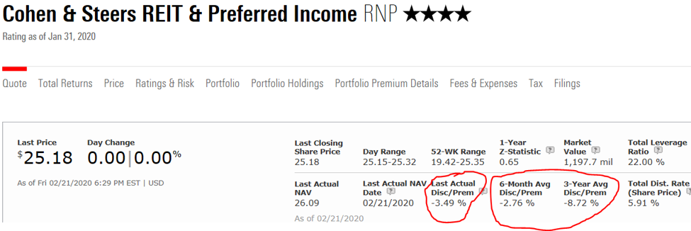 I am usually buying the CEFs at a discount to NAV (net asset value). To verify if the current price is discounted, I use the Morningstar.com website (see the snap picture).