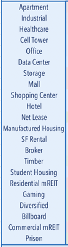 In accordance with Investopedia, a real estate investment trust (REIT) is a company owning and typically operating real estate that generates income. Properties included in a REIT portfolio may include apartment complexes, data centers, health care facilities, hotels, infrastructure—in the form of fiber cables, cell towers, and energy pipelines—office buildings, retail centers, self-storage, timberland, warehouses, etc. (see the picture). It is not enough to know that you want to buy a REIT. You have to choose one or more sub-industries (see the picture below). Each of them has its own specific.