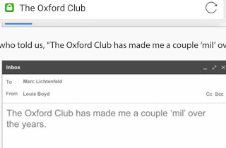 I mean customer testimonials like this one from the Oxford club (pic on the right).