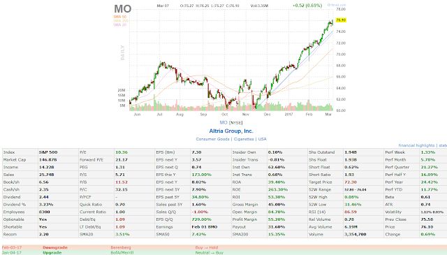 I would not say that the stock rating by the analysts is always wrong (see the chart below for Altria Group (MO) – the BofA/Merrill rating in January). Breaking the new high through the buying point on good volume manifests itself. If you try ten times, you might be right at least once.