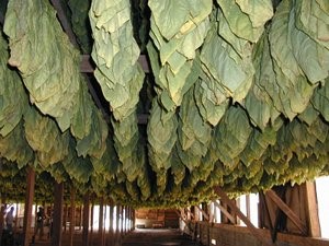 Whether it's primed or cut, the tobacco next goes to the same place: a curing barn, where it will spend about a month drying and turn from a verdant green into a rich brown (see the picture below).
