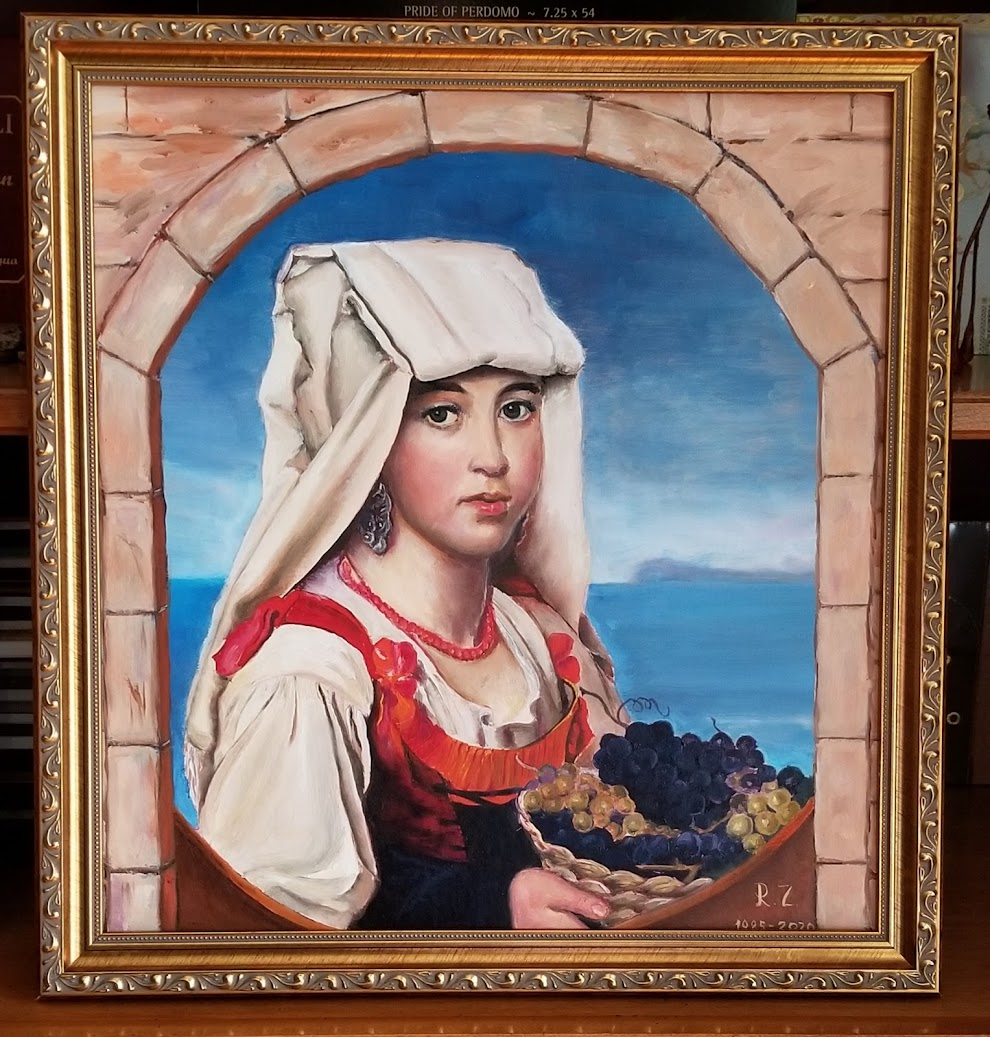 “Girl with grapes”. By O. Kiprensky. Oil on canvas, 16×20. My Master copy and interpretation. Private collection.